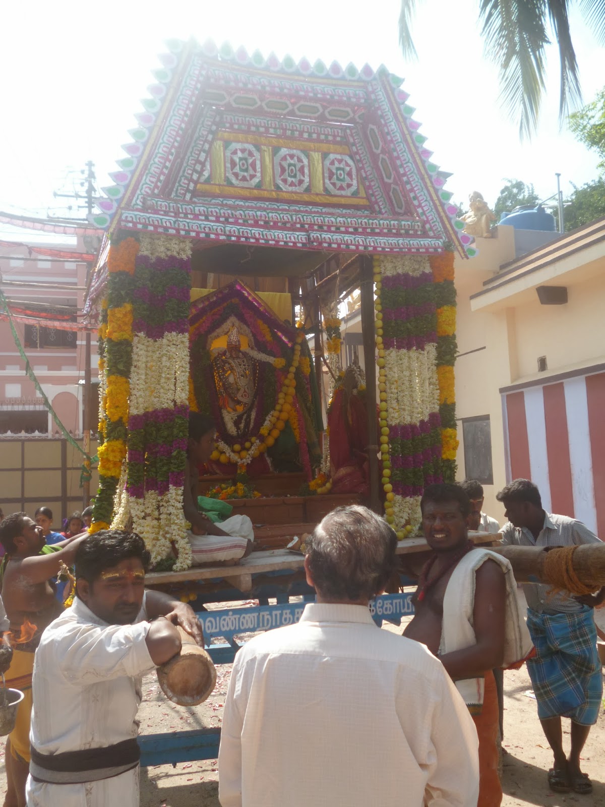 பிற்பகல் 1 மணிக்கு சப்பரம் இறங்கியது. சீர்பாதக் காரர்கள் அடுத்து சர்க்கரை விநாயகர் கோயிலுக்குச் சென்றனர். அங்கு புறப்பாடு பிற்பகல் 2 மணிக்கு மேல் தான் தொடங்கியிருக்க வேண்டும்.